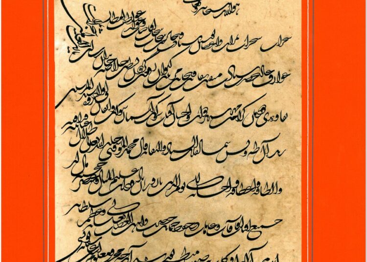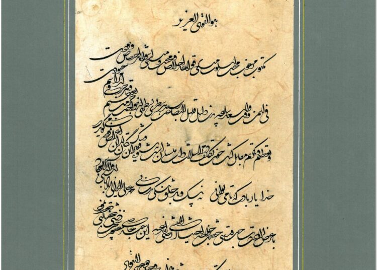 “ﺑﻪ ﻧﺎﻡ ﺧﺪﺍﻭﻧﺪ ﺟﺎﻥ ﻭ ﺧﺮﺩ ﮐﺰﻳﻦ ﺑﺮﺗﺮ ﺍﻧﺪﻳﺸﻪ ﺑﺮ ﻧﮕﺬﺭﺩ”