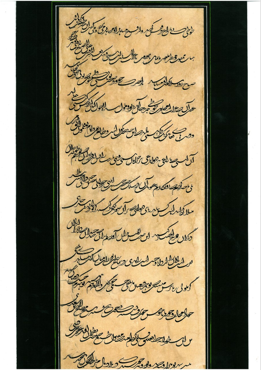 “ﺍﯼ ﺯﻟﻒ ﺗﻮ ﭘﻴﭽﻴﺪﻩ ﺗﺮ ﺍﺯ ﺧﻂ ﺗﺮﺳﻞ / ﺑﺮ ﺩﺍﻣﻦ ﺯﻟﻒ ﺗﻮ ﻣﺮﺍﺩﺳﺖ ﺗﻮﺳﻞ‏.