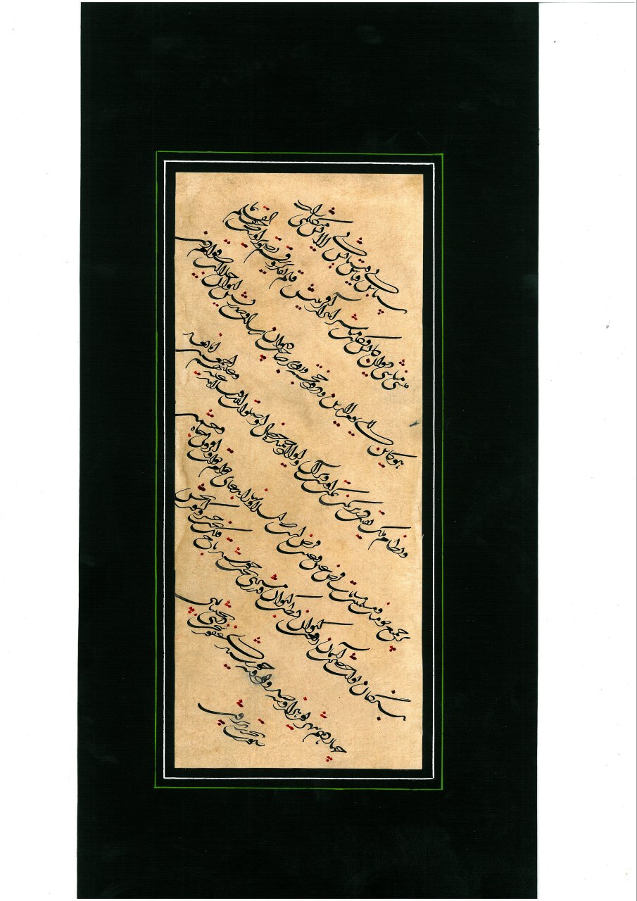 ﭘﻴﻮﻧﺪ ﻋﻤﻴﻖ ﻭ ﻧﺎﮔﺴﺴﺘﻨﯽ ﻫﻨﺮ ﺧﻄﺎﻃﯽ ﻭ ﺷﻌﺮ ﭘﺎﺭﺳﯽ ﻣﻮجب ﺷﮑﻮﻓﺎیی ﻭ بروز ﺍﺳﺘﻌﺪﺍد ﺫﺍﺗﯽ ﻭ ﺧﺪﺍﺩﺍﺩﯼ ﺍﻳﺸﺎﻥ ﺷﺪ ﻭ ﺩﺭ ﻧﺘﻴﺠﻪ ﺁﺛﺎﺭ ﺩﻝ ﺍﻧﮕﻴﺰ ﻭ ﭘﺮ ﻣﻐﺰﯼ ﺭﺍ ﺑﻪ ﺯﺑﺎﻥ ﻣﺎﺩﺭﯼ به وﺟﻮﺩ ﺁﻭﺭﺩ. ﮐﻪ ﺩﺭ ﺑﺮرﺳﯽ ﺁﺛﺎﺭﺵ ﺩﺭ ﺧﻮﺍﻫﻴﺪ ﻳﺎﻓﺖ ﮐﻪ ﺗﻤﺎﻡ ﺳﻌﯽ ﻭ ﺗﻼﺵ ﺧﻮﺩ ﺭﺍ ﺩﺭ ﺳﺮﻭﺩﻥ و خلق اثر بر ﻣﺒﻨﺎﯼ ﺻﺤﻴﺢ ﺳﺮﺍﻳﺶ ﻭ اﺳﺘﻔﺎﺩﻩ ﺍﺯ ﻭﺍﮊﻫﺎﯼ ﺍﺻﻴﻞ ایرانی ﺑﻨﺎ ﻧﻬﺎﺩﻩ ﺍﺳﺖ.