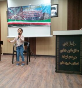 در بخش نخست جشن مهرگان آریسا سرقلی شاهنامه خوان ۱۱ ساله و ممتاز خوزستانی داستان ضحاک و کاوه آهنگر را نقالی نمود، سپس بهمن سلیمانی بابادی از شاعران و نویسندگان فرهنگی استان نخست طی سخنانی بر اهمیت پاسداشت آیین های ایرانی تاکید کرد.وی همچنین توجه بیشتر مسئولین فرهنگی کشور به بحث ملی گرایی ایرانی به عنوان سلاح دفاعی موثر برای جلوگیری از تهدیدات ارضی برخی کشورهای همسایه را گوشزد کرد و در پایان یکی از سروده های پرشور میهنی خود را خوانش نمود.