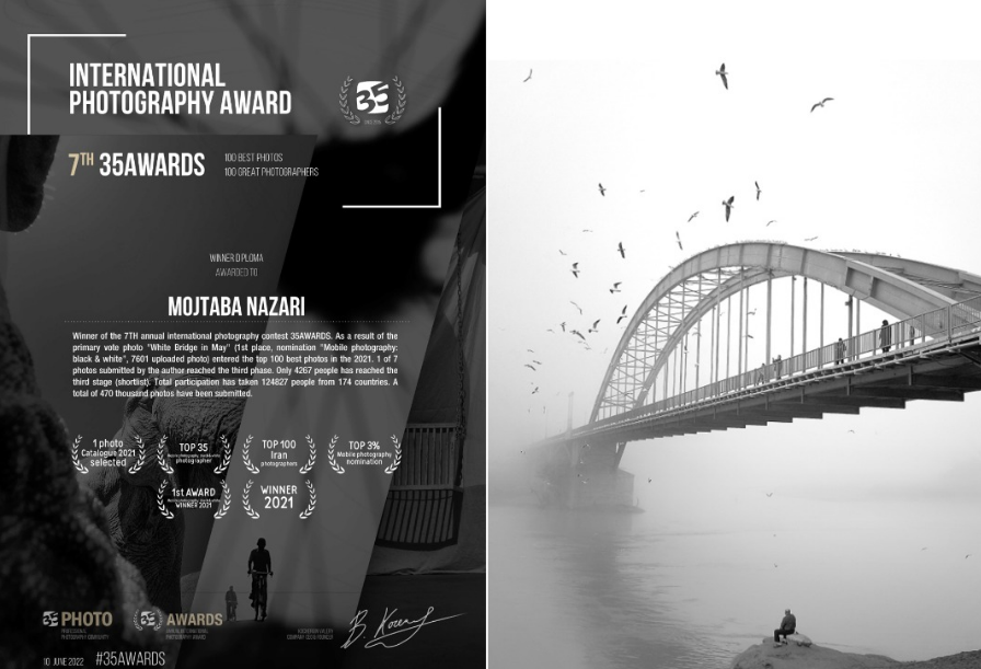 اثر این عکاس خوزستانی با عنوان «پل سفید در مِه» جزء ۱۰۰ عکس برتر سال ۲۰۲۱ و برای چاپ در کاتالوگ و کتاب سال ۳۵awards انتخاب شد.