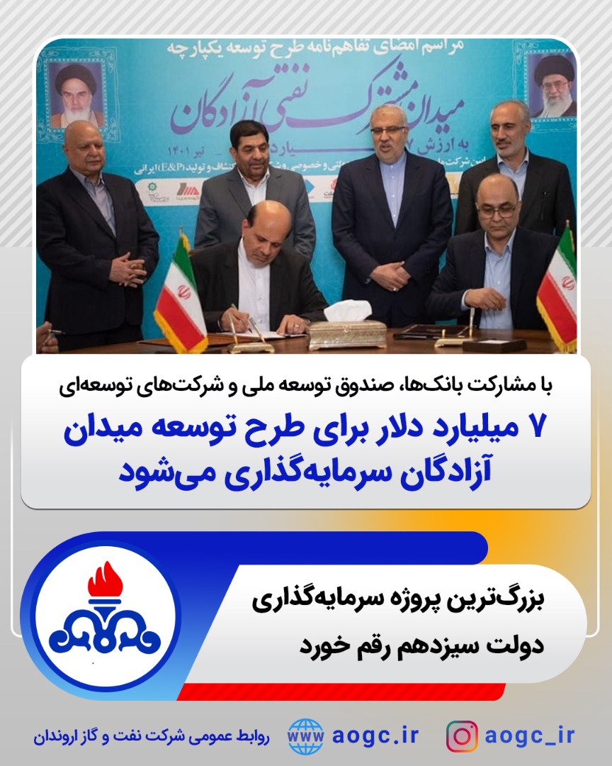 بر این اساس این پروژه بزرگترین پروژه سرمایهگذاری دولت سیزدهم و حتی دولتهای اخیر محسوب میشود و از قرارداد ناتمام توتال در دولت یازدهم (۴.۸ میلیارد دلار) نیز بزرگتر است، با این تفاوت که توتال فقط چند میلیون دلار سرمایهگذاری و کار را نیمهتمام رها کرد، اما در طرح توسعه میدان آزادگان همه منابع از داخل تأمین میشود.