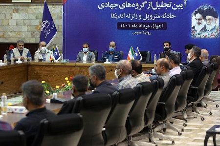 در ادامه نیز مهندس امیر بصیری مدیر عملیات ترابری شرکت ملی مناطق نفت خیز جنوب ضمن تقدیر از برگزار کنندگان این مراسم و اهتمام مدیریت  شرکت در خصوص تقدیر از مجاهدان حادثه متروپل و زلزله اندیکا، اظهار داشت: در بحران‌ها آن نیرویی که بدون ترس و به سرعت وارد عمل می‌شود نیروی شرکتی است که برای کشور و نظام کار می‌کند که به علت برخورداری از تجهیزات و علم تخصصی، حضور فعال‌تر و بهتری نسبت به نیروهای مردمی و جهادی دارد.