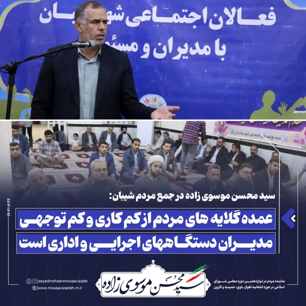 وی گلایه مندی مردم شیبان از برخی مدیران خوزستانی را بحق دانست و افزود: عمده گلایه های مردم از کم کاری و کم توجهی مدیران کل دستگاههای اجرایی و اداری است.