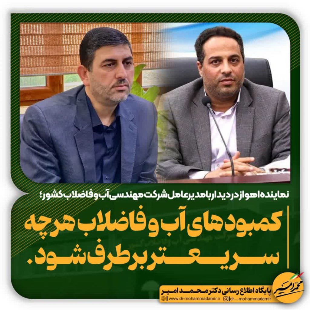 دکتر محمد امیر نماینده مردم شریف اهواز،باوی،حمیدیه و کارون در مجلس شورای اسلامی در دیدار با مدیر عامل شرکت مهندسی آب و فاضلاب کشور: درخواست تأمین ساختمان اداری آبفا،لوله پلی اتیلن،ماشین آلات…