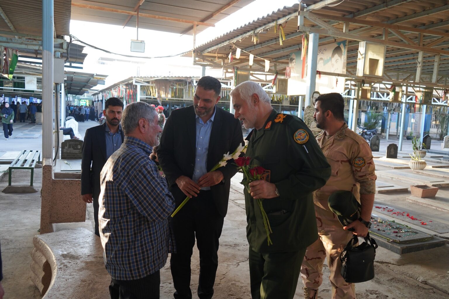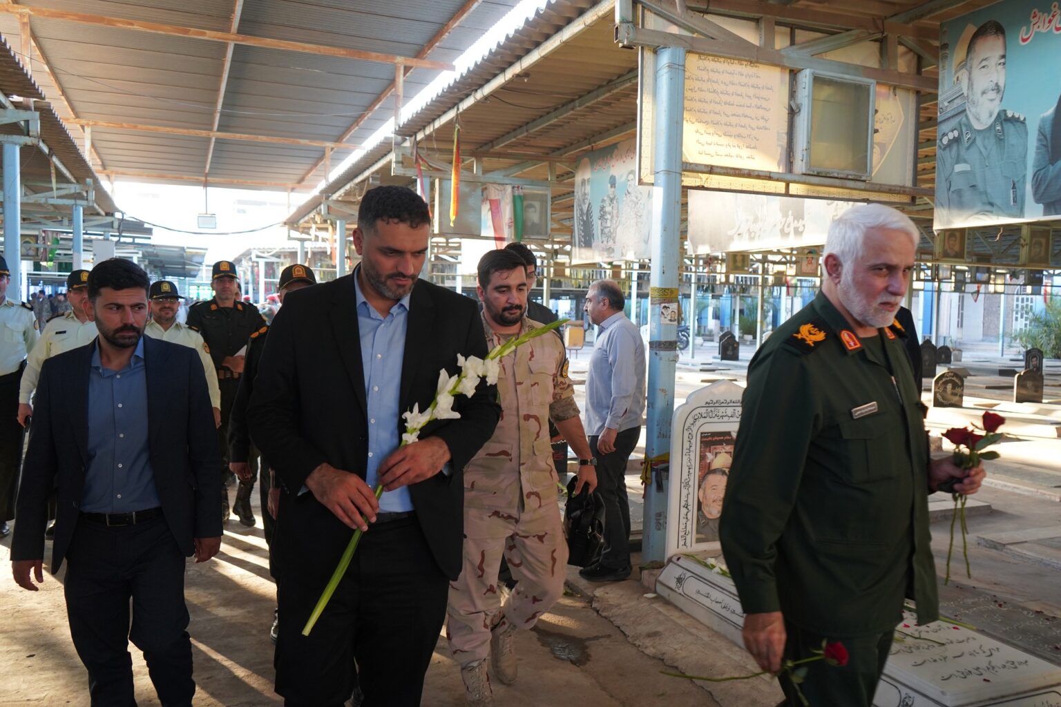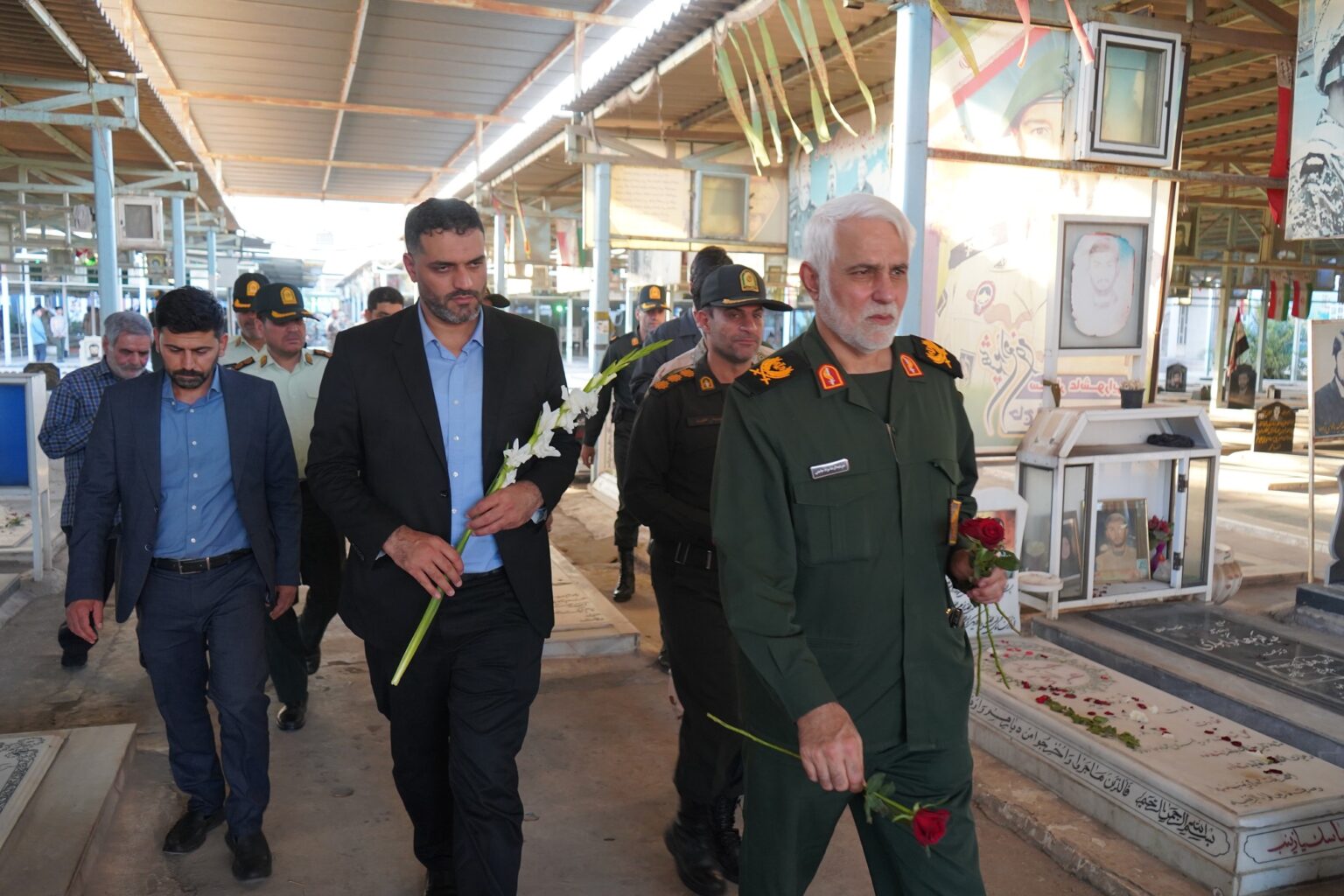 آیین غبارروبی و عطرافشانی قبور شهدا با عنوان”مهمانی لاله ها”، به مناسبت هفته دفاع مقدس روز پنجشنبه سوم مهرماه ۱۴۰۴ با حضور عبدالعظیم شمخانی سرپرست فرمانداری اهواز، امیر سرتیپ دوم حسین محمدشفیعی،فرمانده قرارگاه منطقه‌ای جنوب غرب آجا، سردار احمدرضا حاجتی مدیر کل حفظ آثار و نشر ارزش های دفاع مقدس ، سید رضا حسینی مدیر کل بنیاد شهید و امور ایثارگران خوزستان ، جمعی از فرماندهان و نیروهای نظامی و انتظامی، مسئولین استانی و شهرستانی و خانواده های شهدا در بهشت آباد اهواز برگزار شد.