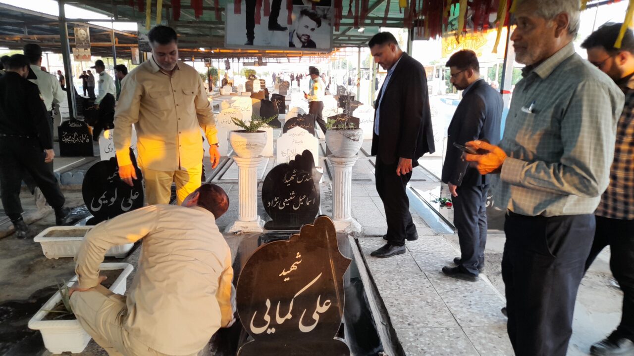 آیین غبارروبی و عطر افشانی قبور شهدا با حضور سرپرست فرمانداری اهواز+ تصاویر