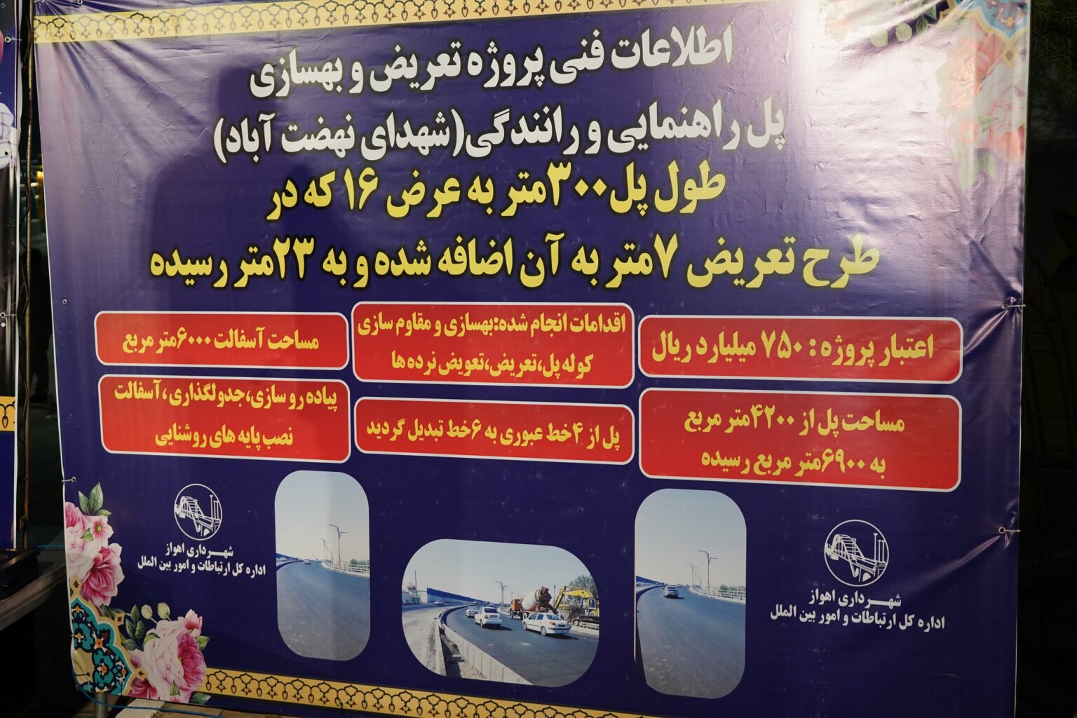 به گزارش پایش صنعت به نقل از روابط عمومی فرمانداری شهرستان اهواز، بنا به اعلام شهرداری اهواز اعتبار اجرای این طرح ۷۵۰ میلیارد ریال بوده و ۲ باند رفت و برگشت ۲ بانده بوده که اکنون به ۶ باند افزایش یافت.