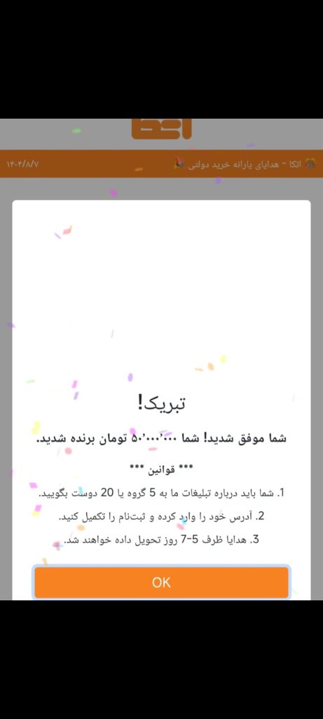 به گزارش پایش صنعت سرهنگ کارآگاه علی حسینی رئیس پلیس فتا استان خوزستان هشدار داد: طی روزهای اخیر پیام دریافت جایزه در مسابقه فروشگاه اتکا برای هموطنان در حال ارسال میباشد.