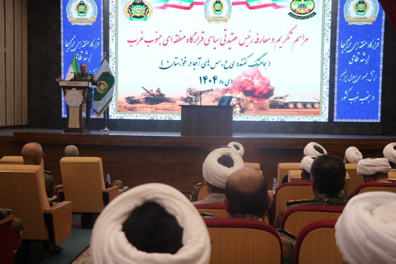 در ادامه، سرتیپ دوم حسین محمد شفیعی، فرمانده قرارگاه منطقهای نزاجا در جنوب غرب، با اشاره به جایگاه بیبدیل کار عقیدتی در توانمندسازی نیروها اظهار داشت: «در میدان سخت و پیچیده امروز، تقویت بنیانهای فکری و ایمانی رزمندگان، مهمترین سلاح ما در برابر تهدیدات دشمن است.» وی خطاب به مسئول جدید گفت: «از همگان انتظار داریم تا از تجربیات گرانبهای شما در مدیریت این عرصه حساس، حمایت و پشتیبانی لازم را به عمل آورند.»