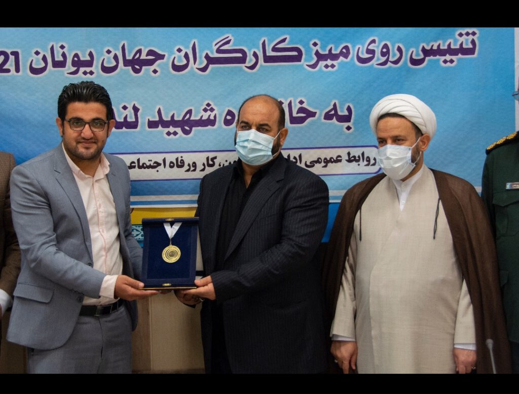 ورزشکار شرکت توسعه نیشکر و صنایع جانبی در مراسمی با حضور مسئولین استانی مدال قهرمانی خود در مسابقات جهانی تنیس روی میز کارگری را به خانواده شهید علی لندی تقدیم کرد.