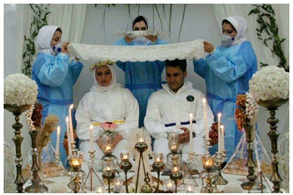 جشن پیوند دو پرستار بیمارستان امیرالمومنین(ع) اهواز با رنگوبوی کرونا و با رعایت دستورالعملهای