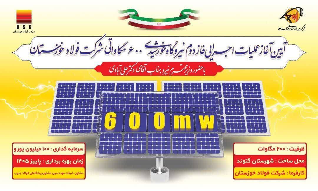 فاز دوم نیروگاه ۶۰۰ مگاواتی فولاد خوزستان کلنگ زنی خواهد شد امین ابراهیمی مدیرعامل شرکت فولاد خوزستان اظهار داشت: بر اساس پیش بینیها، فولاد خوزستان
