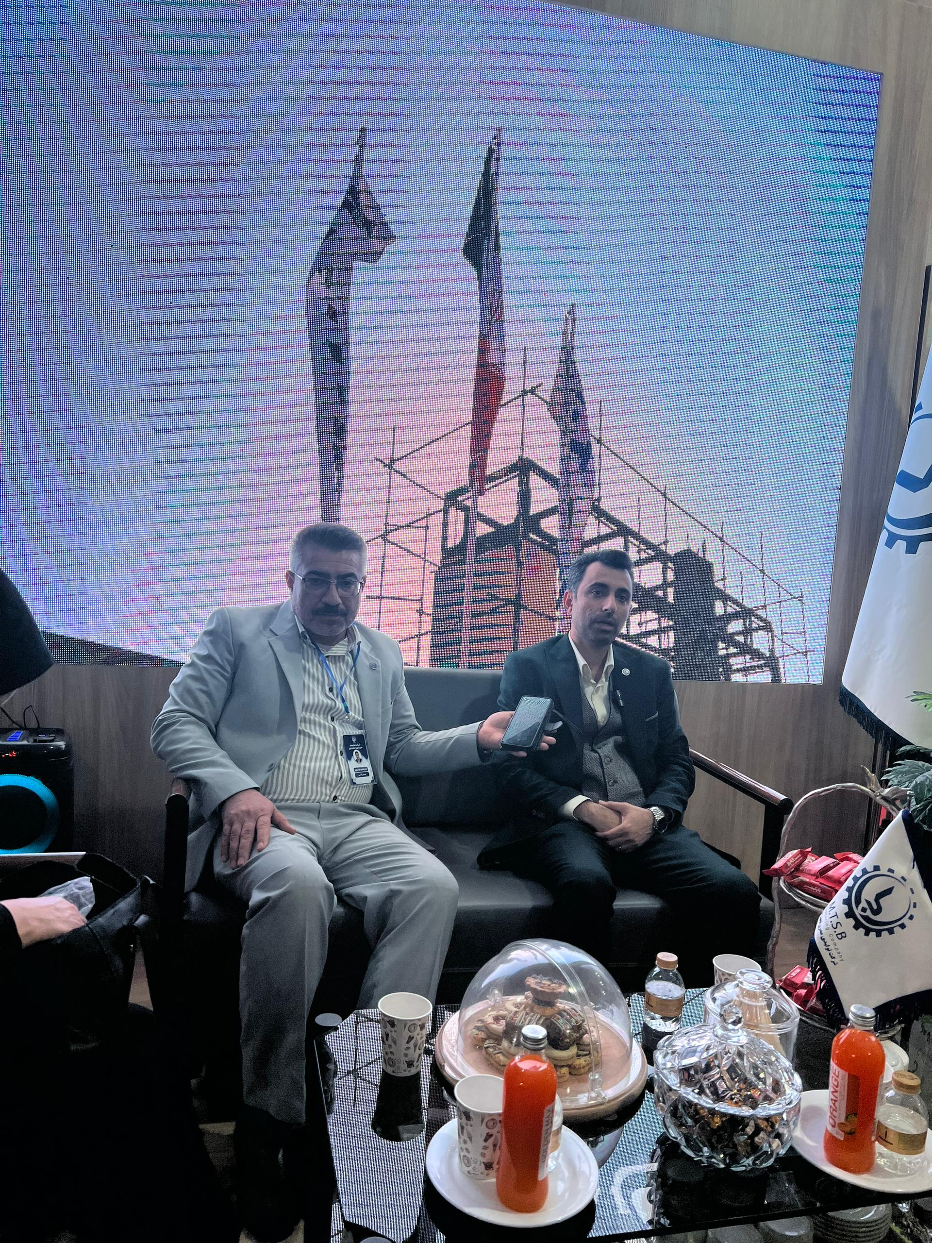 مهندس مجتبی مفتخر، مدیرعامل شرکت مدرن تجهیز صنعت برین، در نشست خبری چهارمین روز نمایشگاه توانمندی های صنایع کوچک که همزمان با نمایشگاه پتروشیمی و